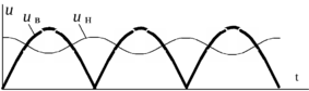 В результате переменная составляющая тока через нагрузку значительно уменьшается и снижает степень пульсации выпрямленного напряжения (Рис.8б).
