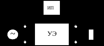 Любой усилитель, структурная схема которого изображена на рисунке 1, имеет входную и выходную цепи, к которым подключается источник сигнала EГ, нагрузочное устройство RН, источник питания ИП и усилительный элемент УЭ (транзистор, микросхема). Процесс усиления связан с преобразованием энергии источника питания в энергию выходного сигнала усилителя.