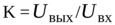 Коэффициент усиления по напряжению К, в общем случае является комплексной величиной, т.к. входные и выходные сигналы переменные. На практике часто используют К в виде отношения модулей (амплитуды, действующих значений) выходного и входного сигналов