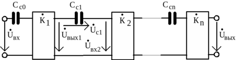 Такие усилители применяются для получения большого коэффициента усиления. Структурная схема усилителя приведена на рисунке 4 и содержит n однокаскадных усилителей (например УОЭ).