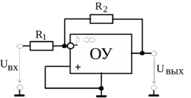 Для этой схемы входное и выходное напряжения связаны соотношениями: