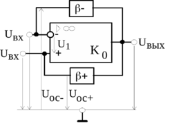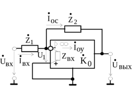 К0 - коэффициент усиления усилителя без обратной связи (в области средних частот, где воздействием реактивных элементов ОУ и обратной связи можно пренебречь).