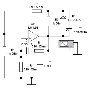 3.3 Опыт№3. Автогенератор RC-типа, с отрицательной обратной связью Кос=1,5, мостом Вина в цепи положительной обратной связи и автостабилизацией на стабилитронах.