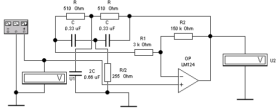 Опыт №2. Избирательный усилитель с отрицательной обратной связью, Кос=50 и двойным Т-образным мостом .