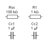 R1 = 1 кОм и конденсаторов связи Сс1 = Сс2 = 1мкФ.