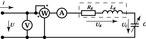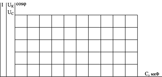 | U, В | I, А | P, Вт | UK, В | UC, В | Z, Ом | XC, Ом | cos | | X, Ом | ||
