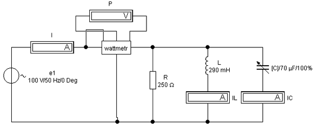 Электрическая цепь переменного тока при параллельном соединении элементов RLC.