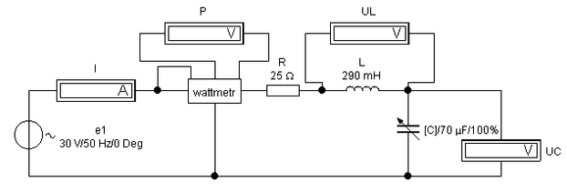 Графики зависимостей I=f(C), UL=f(C), UC=f(C), cos f(C).