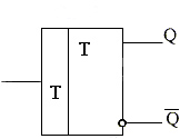 Т – триггер - триггер с счетным Т-входом. Характерным свойством. Т-триггера является, его переключение в противоположное состояние с приходом каждого очередного входного импульса. В виду его широкого применения в счетчиках импульсов его часто называют триггером со счетным запуском. Обычно он выполняется на базе R-S триггеров. Его условное обозначение приведено на рис. 8.