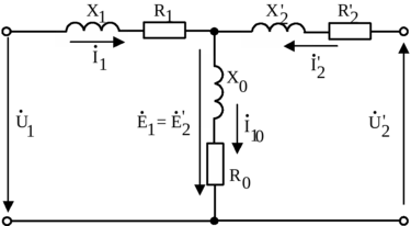 Согласно основным уравнениям возможно смоделировать полную эквивалентную схему трансформатора ( Т- образная схема, Рис.2).