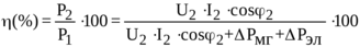 Как известно к.п.д. определяется отношением полезной мощности к мощности потребляемой, т.е. вторичной к первичной. Выражение для к.п.д. в процентах может быть представлено как