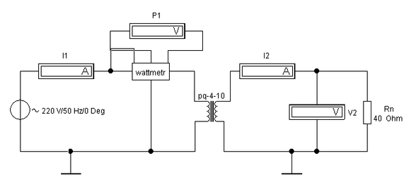 3.5 Моделирование схемы опыта нагрузки трансформатора.