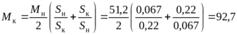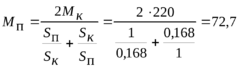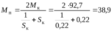 Максимальный пусковой момент соответствует условию Мп=Мк, следовательно Sп=Sк=1.
