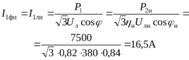 Номинальный ток в обмотке статора: