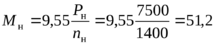 Номинальный момент на валу: