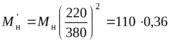 как изменится номинальный момент на валу, если питающее напряжение уменьшить с 380 В до 220 В?