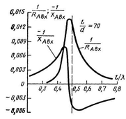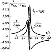 Из резонансных характеристик по- луволновых вибраторов различного диаметра, приведенных на рис. 6.8, видно, числу полуволн, появляется индуктивная составляющая входного сопротивления, для компенсации которой нужно несколько укоротить вибратор.