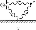 а — пути прямой и отраженной волн; б — электрический заряд ,и его зеркальное изображени