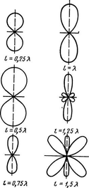 Рис. 6.19. Диаграммы направленности симметричных вибраторов различной длины
