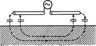 Объясняется это тем, что при плохой проводимости земли емкостные токи от .вибратора проникают в землю (рис. 6.29) и цепь тока образует рамку,