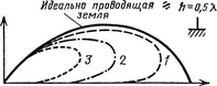 зывает, что в основном влияние плохой проводимости земли выражается в ослаблении поля и эффекте «отброса» нижнего лепестка диаграммы направленности от поверхности земли.