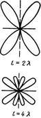 На рис. 6.19 показаны диаграммы направленности симметричных антенн в плоскости, проходящей через ось вибраторов, при различных отношениях l/λ без учета влияния земли. Для того