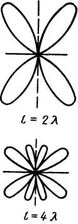 Рис. 6.19. Диаграммы направленности симметричных вибраторов различной длины