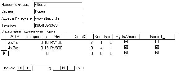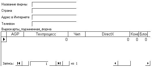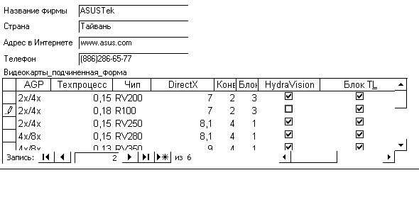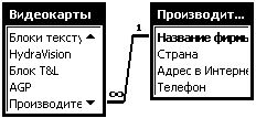 Пометки у концов линии связи 1—8 означают, что одна запись таблицы Производители может иметь сколько угодно связанных записей в таблице Видеокарты.