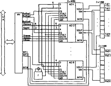 Рис. 4.13. 8-канальное УС для связи по интерфейсу RS-232C, ориентированное на сопряжение с ISA.
