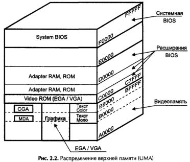Стандартное распределение верхней памяти выглядит следующим образом (рис. 5.2):