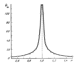 Рис.13.4.1. Влияние стехиометрического соотношения бифункциональных реагентов на степень полимеризации Pn при поликонденсации.