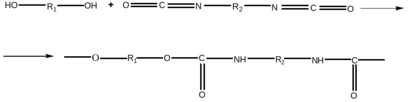 В реакцию «отверждения» в качестве гликолей обычно вводят олигомеры с М ~ 103 – 104 с концевыми гидроксильными группами на основе полиоксиэтилена, полибутадиена, полистирола и др. (олигомерная технология). Тем самым, получают целую серию материалов с широким спектром физико-механических свойств, гидрофильно-гидрофобного баланса, биосовместимости.