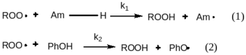 Тем самым, радикалы ROO∙ и Am∙ быстро превращаются в более «безопасный» радикал PhO∙.