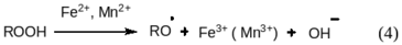 Вклады этих реакций зависят от температуры, концентрации ROOH и наличии примесей (Fe2+, Mn2+).