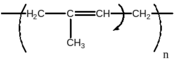 имеет температуру стеклования, равную -70˚С, вращение осуществляется сравнительно легко, нет больших объемных заместителей, хотя и есть метильная группа. Для получения хорошей резины нужно проводить процесс вулканизации. При использовании полиизопрена серная вулканизация и другие виды вулканизации идут хорошо. Главным серьезным недостатком каучуков является весьма низкая химическая стойкость этого материала, т.к. он подвергается окислительной, радио- и фотохимической деструкции, т. е. быстро "стареет". Для устранения этого недостатка в каучук вводят различные стабилизаторы.