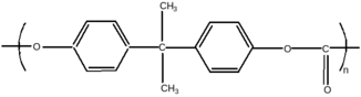Имеет температуру стеклования +90◦С. Повышенная жесткость цепи обеспечивается наличием