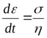 т.е. при любом значении напряжения жидкость течет, причем коэффициент пропорциональности между скоростью течения и напряжением, η, определяется как вязкость этой жидкости.