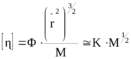 где Ф – комплексная константа. Полученное уравнение называется уравнением Флори-Фокса. Его можно привести к виду уравнения Марка-Куна-Хаувинка. Т. к. радиус клубка зависит от ММ макромолекулы, то справедливо соотнести оба полученных уравнения: