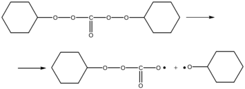 сложный радикал циклогексилпероксокарбоната распадается далее с выделением CO2