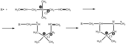 Полимеризация диметилаллиламмоний хлорида идет с образованием цикла: