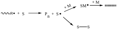 В результате скорость процесса не меняется, т. к. количество радикалов в системе не меняется, но происходит снижение молекулярной массы полимера; этим методом можно уменьшать (регулировать) молекулярные массы образующихся полимеров.