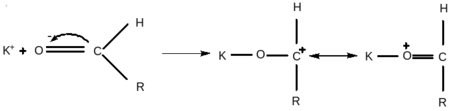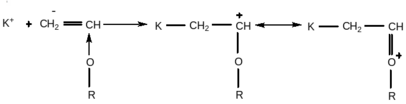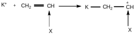 или в тех случаях, когда атака катиона направляется не на двойную связь, а на другую группу, например