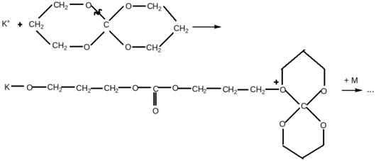 После раскрытия цикла образуется стабильный катион, способный атаковать следующие молекулы мономера с раскрытием цикла.