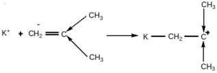 Могут существовать различные варианты взаимодействия карбкатиона и аниона. Если взаимодействие сильное, то образуется ионная пара: К+А-