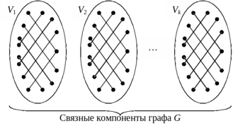 Таким образом, получено, что vi vj — отношение эквивалентности и множество вершин разбивается на конечное число классов эквивалентности: V V1 V2 … Vk, Vi Vj = i j. При этом граф G разбивается на связные подграфы, которые называются компонентами связности.