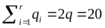 Доказательство. Равенство следует из того, что у каждого ребра две стороны и при суммировании qi каждое ребро учитывается дважды: либо оно входит в границы двух соседних граней, либо оно дважды учитывается в одной грани. Лемма доказана.