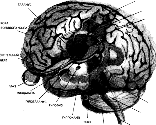 В интегрированном виде представлены основные структуры головного мозга, принимающие участие в познавательных и эмоционально-мотивационных процессах, рассмотренных в предыдущих главах.
