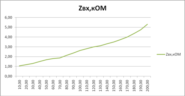 | f,кГц | Uвх,В | Zвх,кОМ |