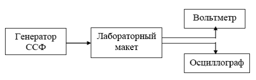 Генератор сигналов специальной формы (ССФ) вырабатывает гармоническое напряжение, которое подается на вход транзистора через гнезда «Вх.1».