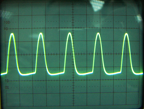 Форма выходного тока наблюдается на экране осциллографа, подключенного к гнездам «Вых.2».